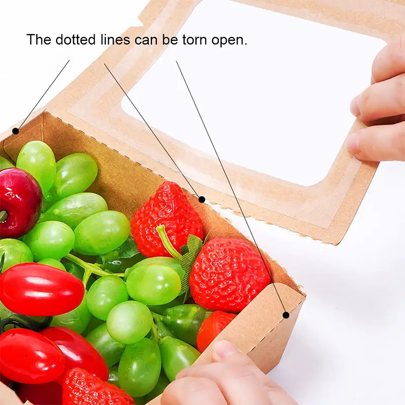 Konstrukcja z klapką sprawia, że jednorazowe papierowe pudełko na żywność o pojemności 1200 ml jest wygodniejsze w użyciu. Plastikowe okienko o wysokiej przezroczystości pozwala wyraźnie wyświetlić cały posiłek, znacznie zwiększając atrakcyjność wizualną i chęć zakupu. Linia przerywana ułatwiająca rozdarcie umożliwia konsumentom usunięcie nadmiaru materiałów, oszczędzając miejsce podczas dzielenia się jedzeniem na stole. Konstrukcja zatrzaskowa zapewnia szczelne zamknięcie pomiędzy pokrywą a spodem.