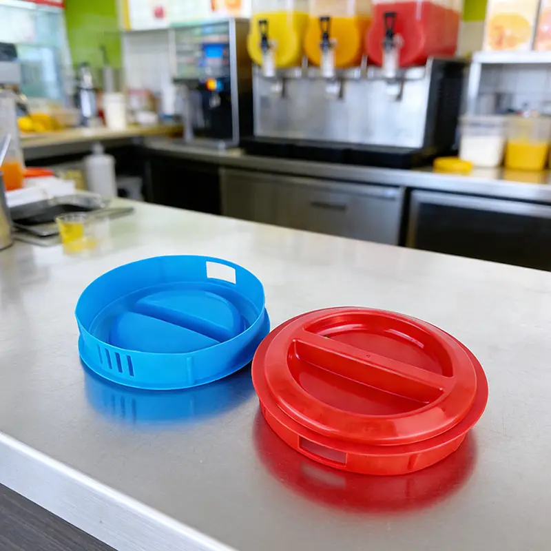 Komercyjny dzbanek z tworzywa sztucznego PP firmy Ningbo Powerr o pojemności 2 litrów do sklepów z napojami Mlecznobiały, półprzezroczysty dzbanek z tworzywa sztucznego wykonany jest z materiału PP przeznaczonego do kontaktu z żywnością. Matowa konsystencja jest miękka i nie szorstka, dzięki czemu wyraźnie widać pozostałą objętość wody, nie będąc jednocześnie zbyt zimną i twardą. Nie ma też zimnego i twardego wyglądu jak model w pełni przezroczysty. Okrągła i gładka pokrywa w kolorach czerwonym i niebieskim dodaje odrobinę żywych kolorów do prostoty. Można go łatwo zintegrować z różnymi stylami wystroju domu, takimi jak styl nordycki i rustykalny, gdy zostanie umieszczony na stole w jadalni lub blacie kuchennym.