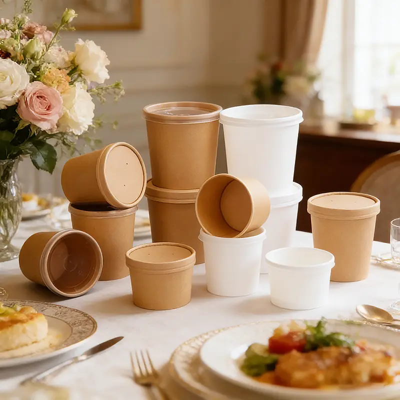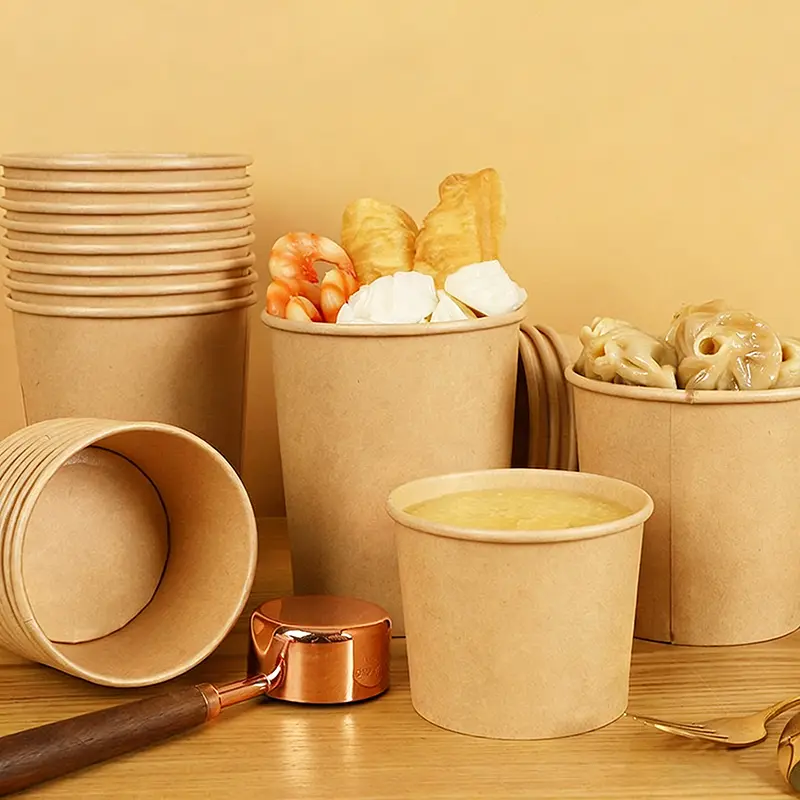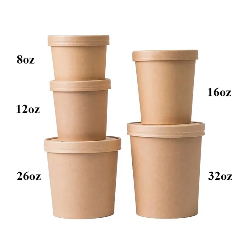 Bezpieczna, praktyczna, atrakcyjna i ekologiczna miska papierowa na zupę z papieru pakowego o pojemności 32 uncji to idealne rozwiązanie do pakowania gorącej i zimnej żywności, przekąsek i markowych usług na wynos.