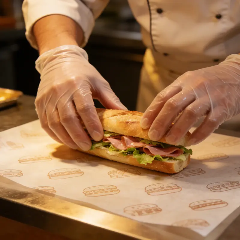NINGBO POWERR PLASTIC PRODUCTS CO., Ltd. produkuje papier do hamburgerów w stylu amerykańskim 38*28 cm. Nasz papier hamburgerowy jest odporny na olej, wodę i przyczepność. Firmy i konsumenci mogą ich używać do pakowania hamburgerów, kanapek, potraw smażonych i pieczonych, owoców, ciastek, wypieków itp.