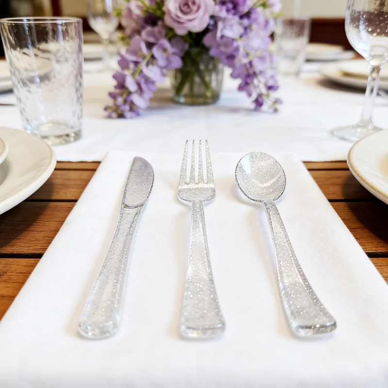 W porównaniu do zwykłej jednorazowej zastawy stołowej i tradycyjnej zastawy metalowej, Classic Party Knives Widelce Łyżki Plastikowe sztućce wyróżniają się fakturą. Powierzchnia produktu została poddana specjalnej obróbce, uzyskując połysk porównywalny z metalem. Modele w metalicznych kolorach emanują wyrafinowaną i elegancką atmosferą, podczas gdy modele przezroczyste są czyste i przejrzyste, całkowicie przełamując tanie wrażenie jednorazowej zastawy stołowej. Pod względem wzornictwa zastawa stołowa charakteryzuje się gładkimi i regularnymi liniami, doskonale łączącymi piękno i praktyczność.
